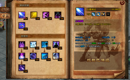 当技能达到一定等级后将无法进行升级,需要再次使用技能书进行突破,突破后的技能将会大幅提升该技能附带效果的几率,并会提高其百分比伤害。